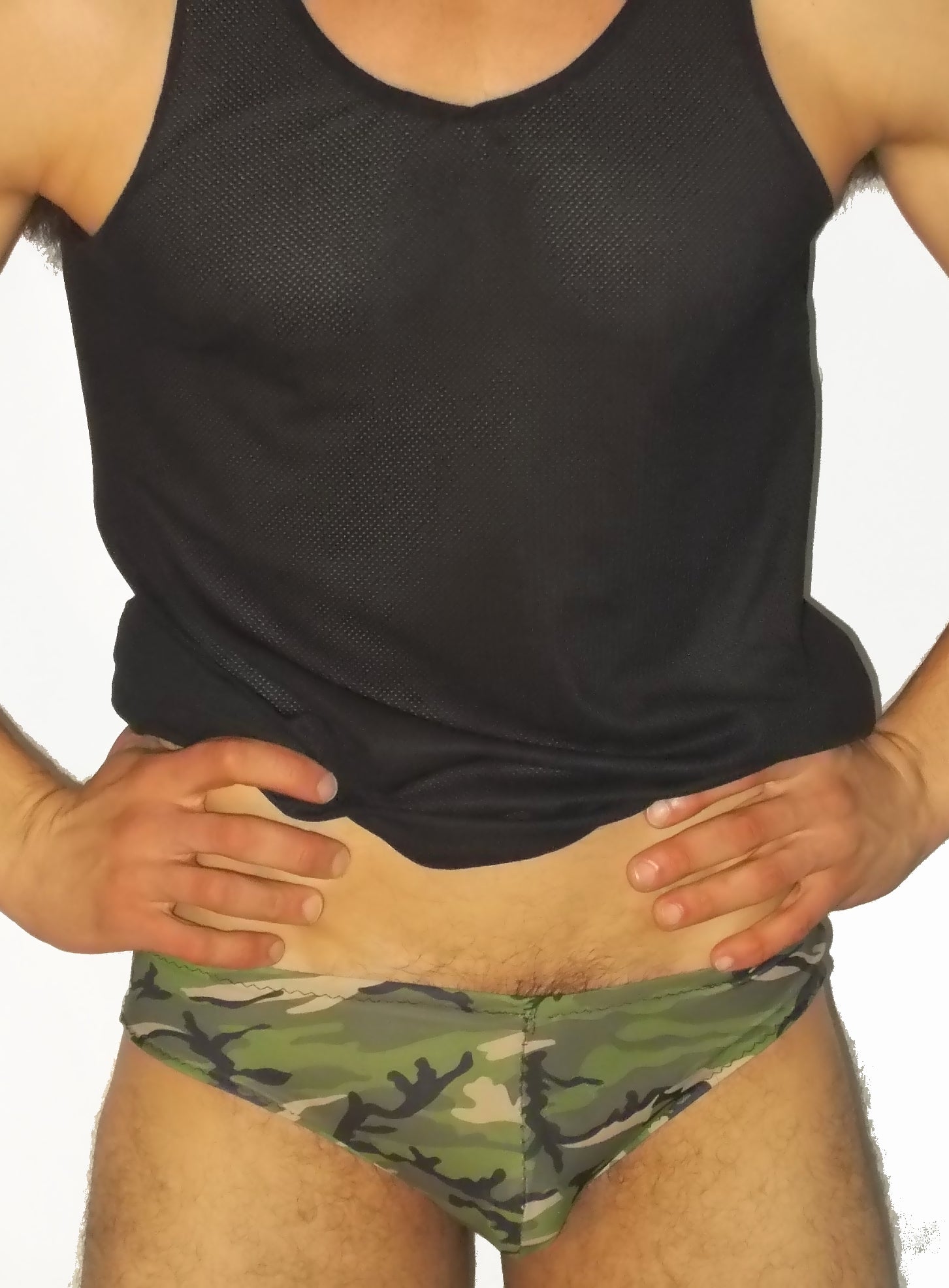 We call it "hybrid" because it looks and feels like a full brief around the waist and in front. The leg straps are attached with a metallic ring for an "edgy" look.
