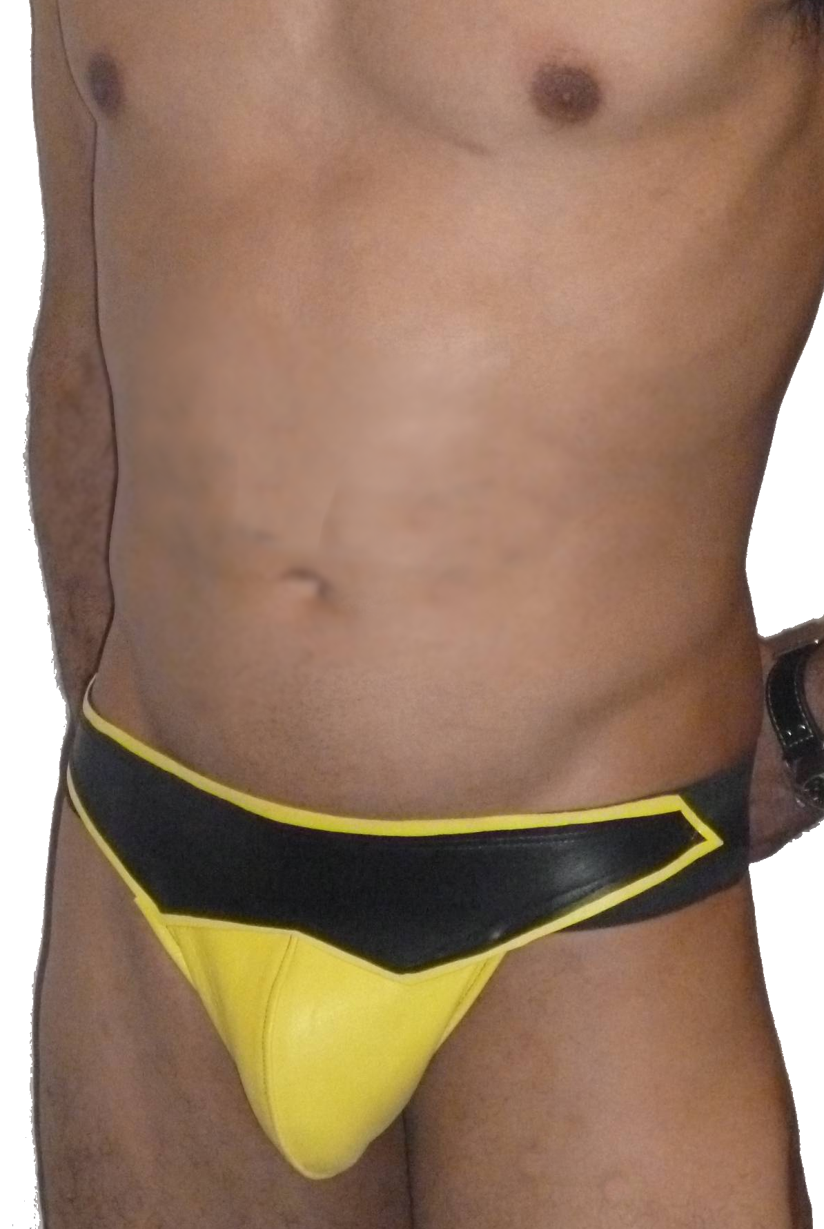Stylish, unique, colorful, and inspired by Gotham. This is definitely an eye-catching jock. We use beautiful leather to make it and you will love how comfortable it is. Black elastic waistband and leg straps.