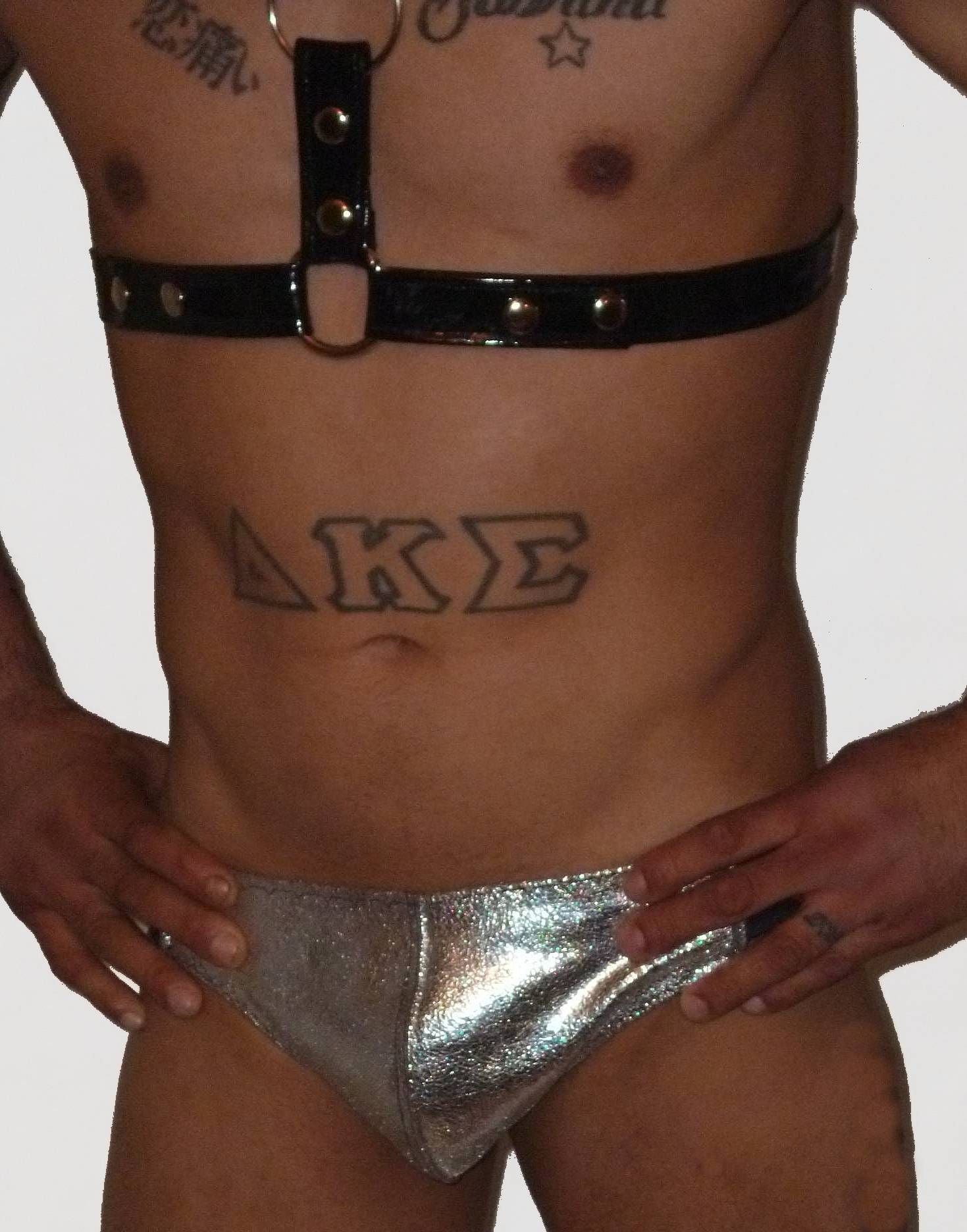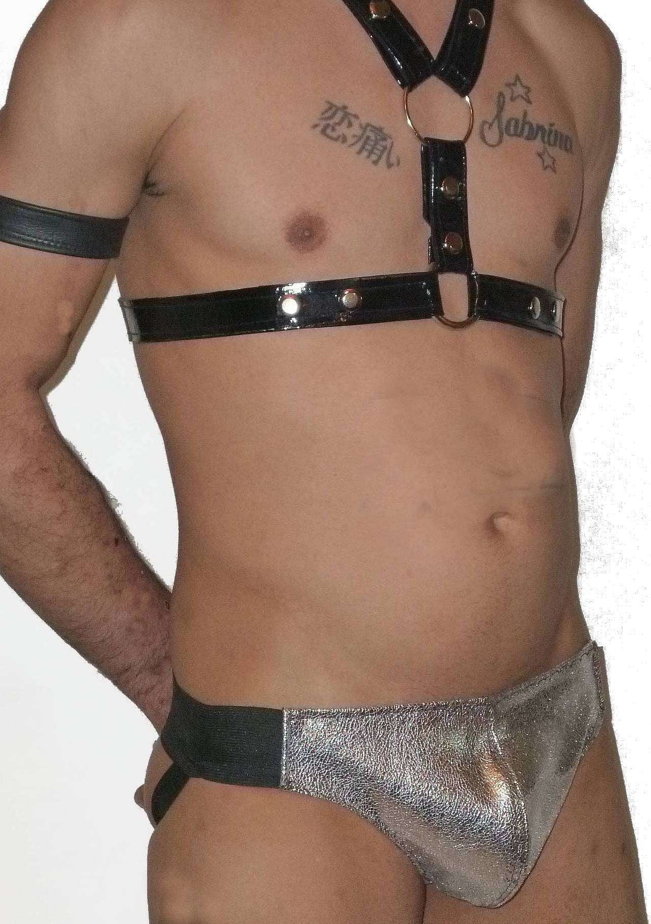 This funky jockstrap is made with leather with a metallic finish. It is a sexy, attention-getting jockstrap and it stands out everywhere. Choose Silver or Gold.