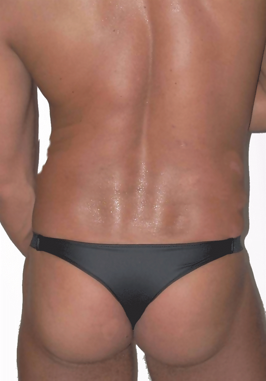A great thong made of black neoprene fabric. Has a great stretch and elastic sides for added comfort.