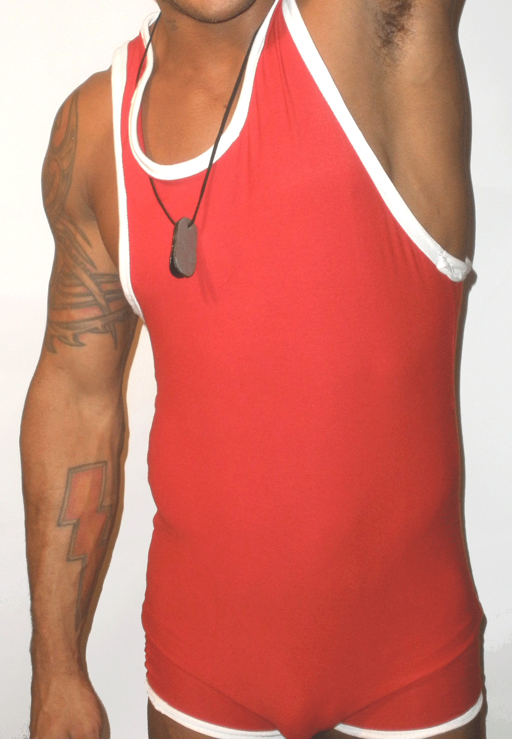 A great stretch fabric that breathes, along with white, red, or black trim. We make it open back for all you wrestlers.