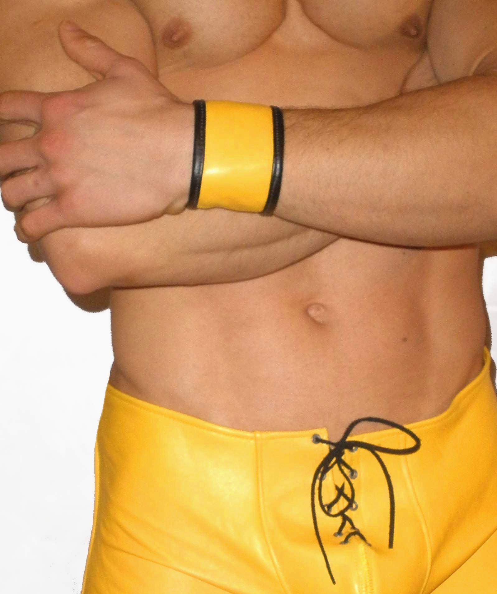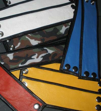 Pick two colors of leather and we will make this great wrist cuff for you. It snaps closed so it won’t fall off. Very stylish.