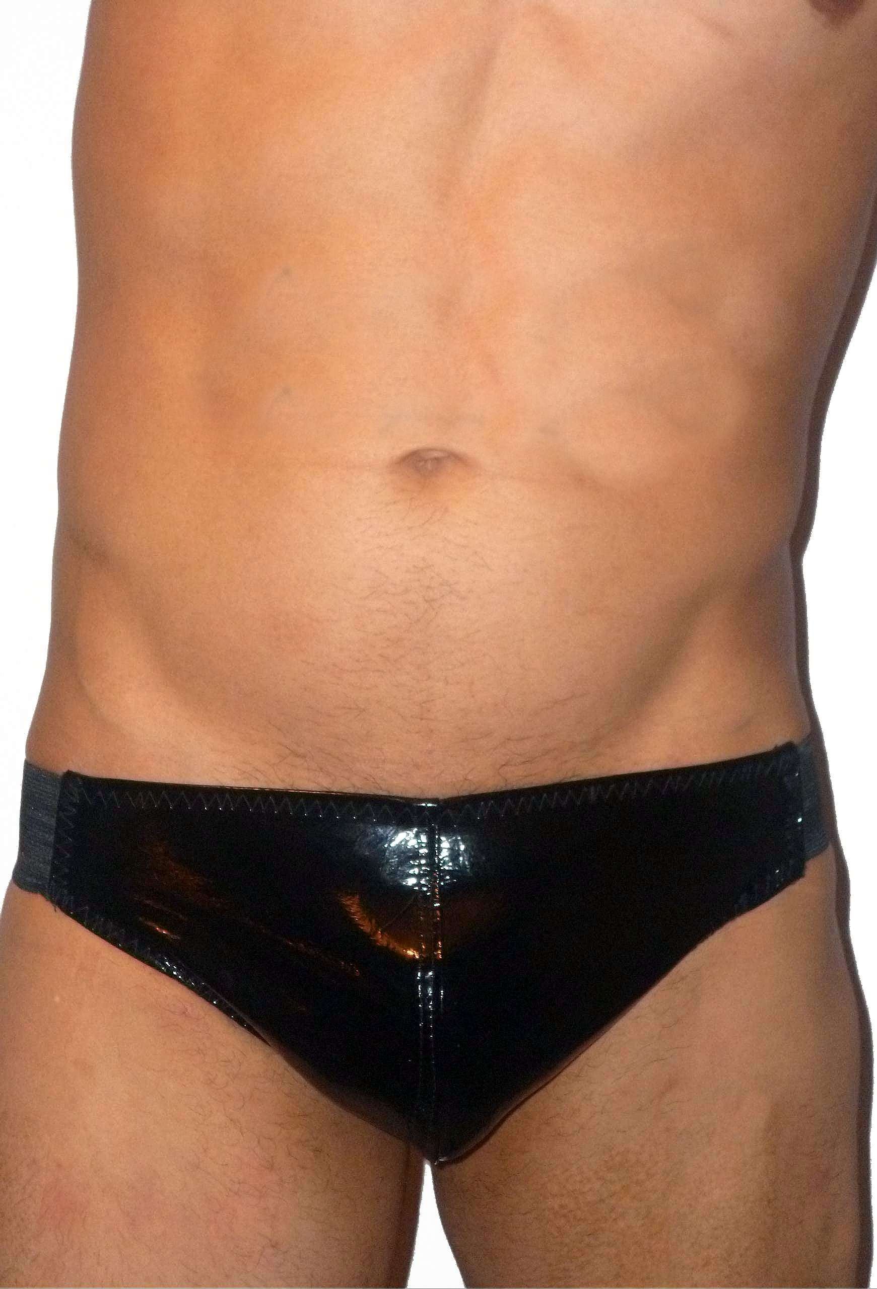 Made of that shiny patent leather. It is a soft and comfortable genuine leather jockstrap that can easily be worn every day.