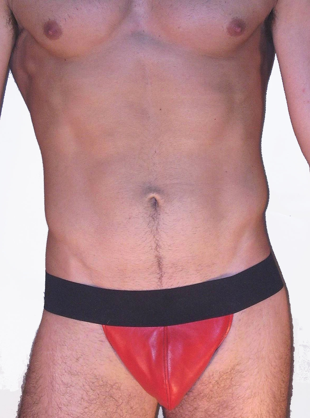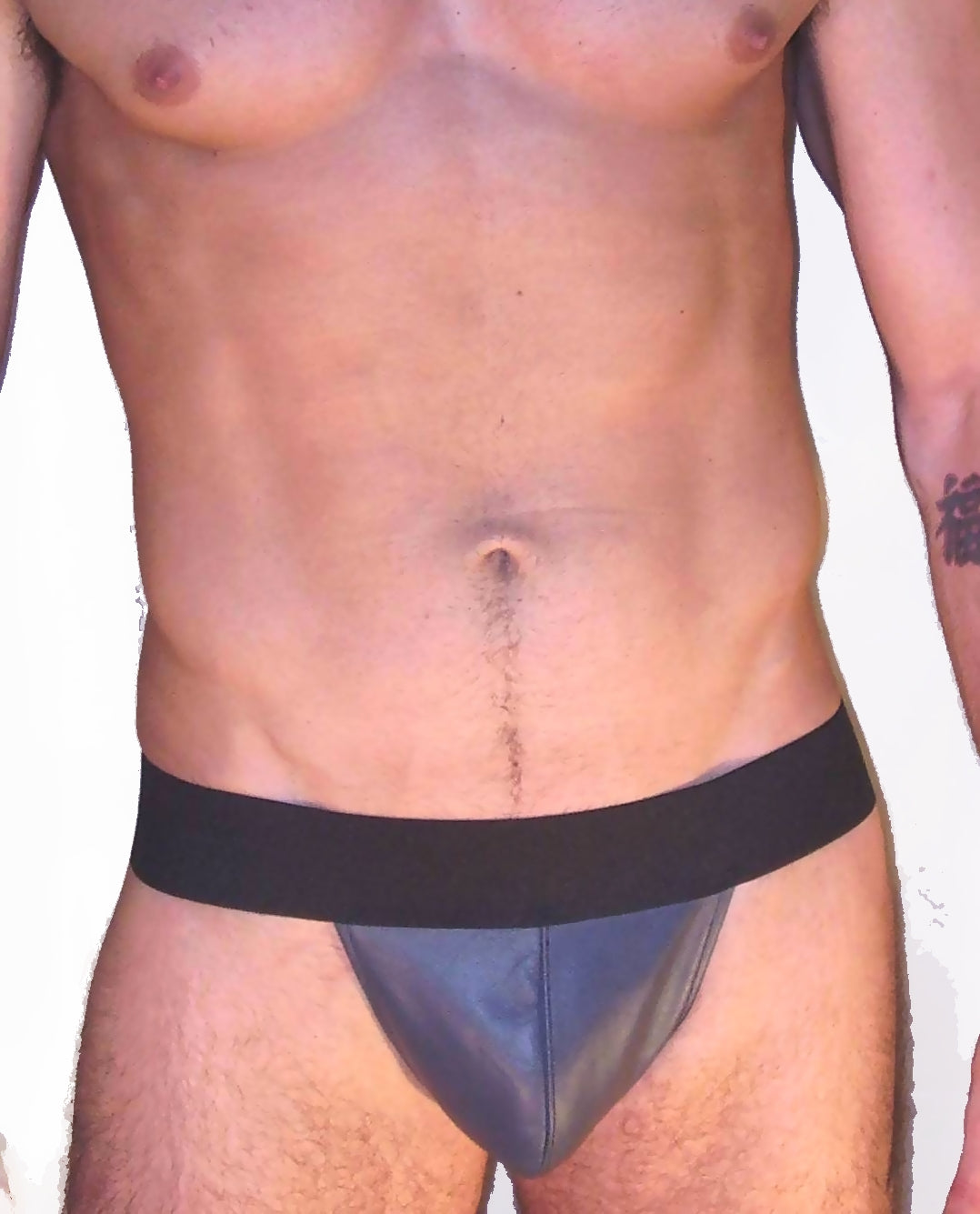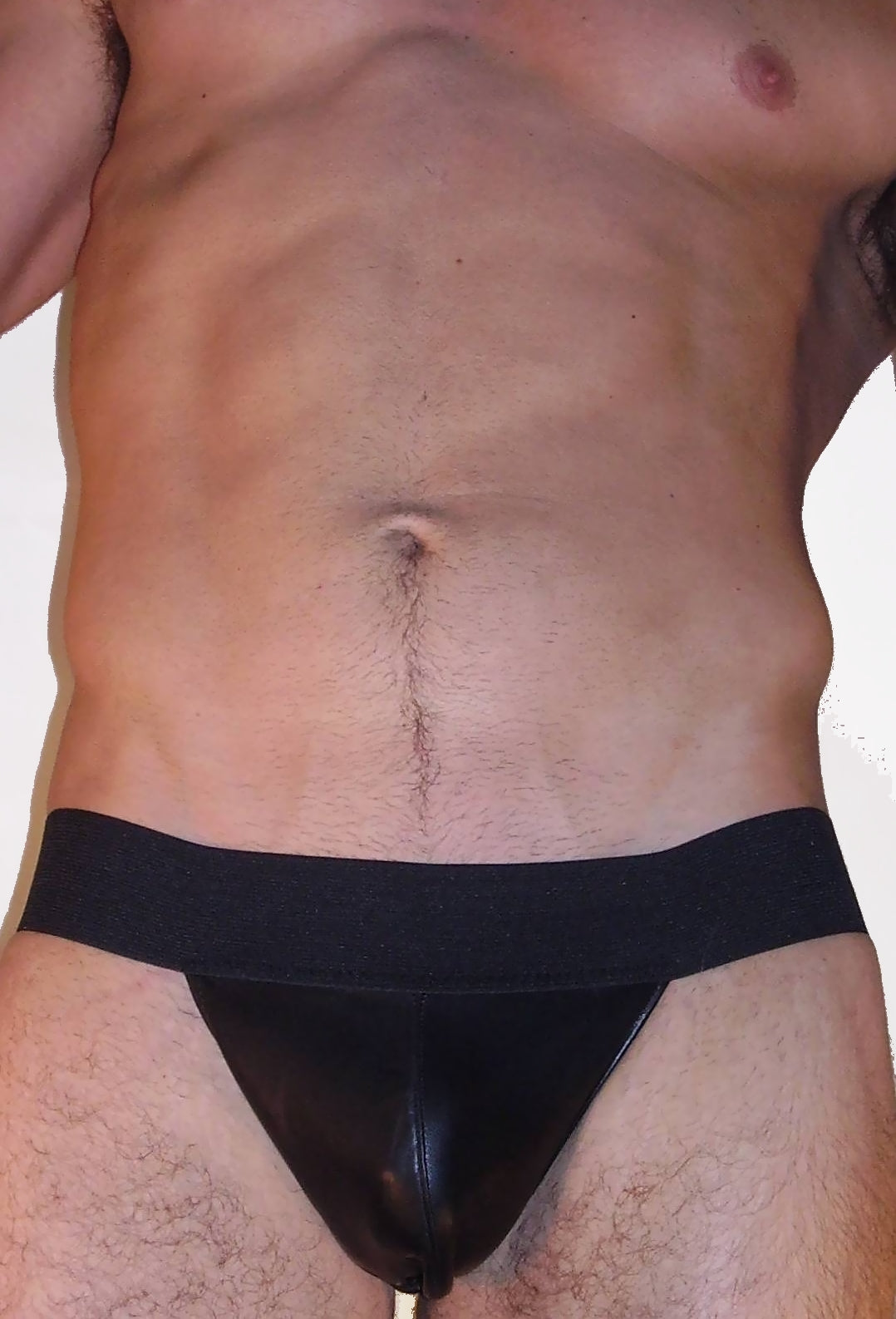 This jockstrap has a colorful and soft comfortable leather pouch that keeps you in place, as well as a comfortable black or white elastic waistband and straps.