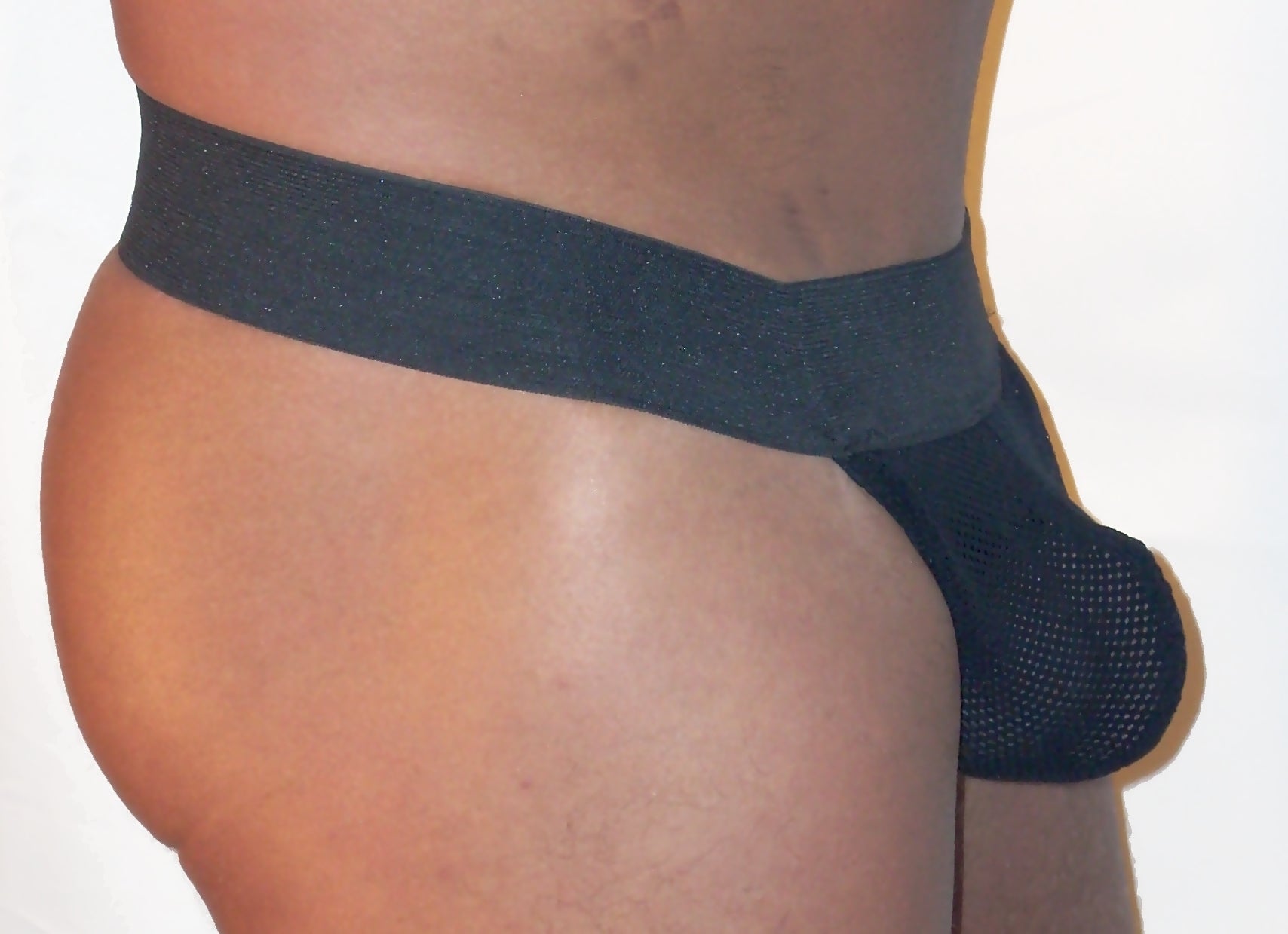 Extremely comfortable jock because it fits great even though there are no legs straps. A sheer soft mesh pouch with black elastic waistband.