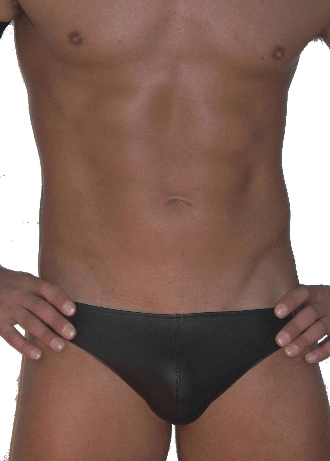 It has a very unique look and "rubber-like" texture. The waistband and legstraps are black elastic and the fit is snug and sexy.