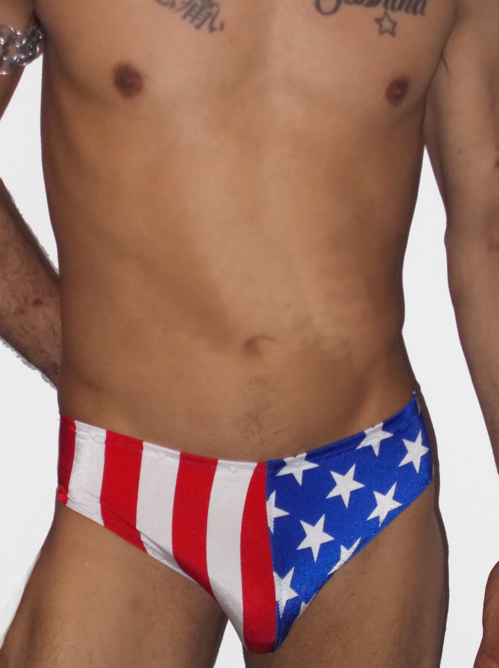 Soft briefs that have a great snug fit and no elastic. The left and right sides are different. Half is the stars and the other half, stripes. They are comfortable and look great.
