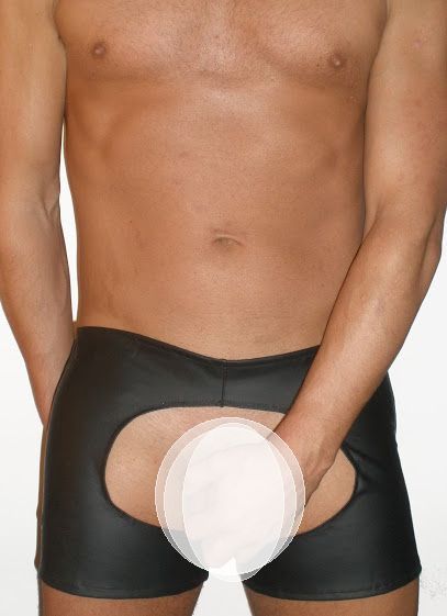 These neoprene shorts are open in front and in back. Black neoprene with that great stretch.